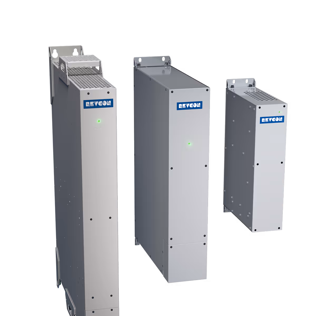The RHF 5P and RHF 8P are 2-stage passive harmonic filters that reduce THDi to below 5% or 8%, with smooth harmonic damping up to the 200th order. Its high efficiency (up to 99.5%) and compact forced-air cooling design make it a highly reliable and space-saving solution, providing significant energy savings and effective performance without requiring de-rating of connected drives.